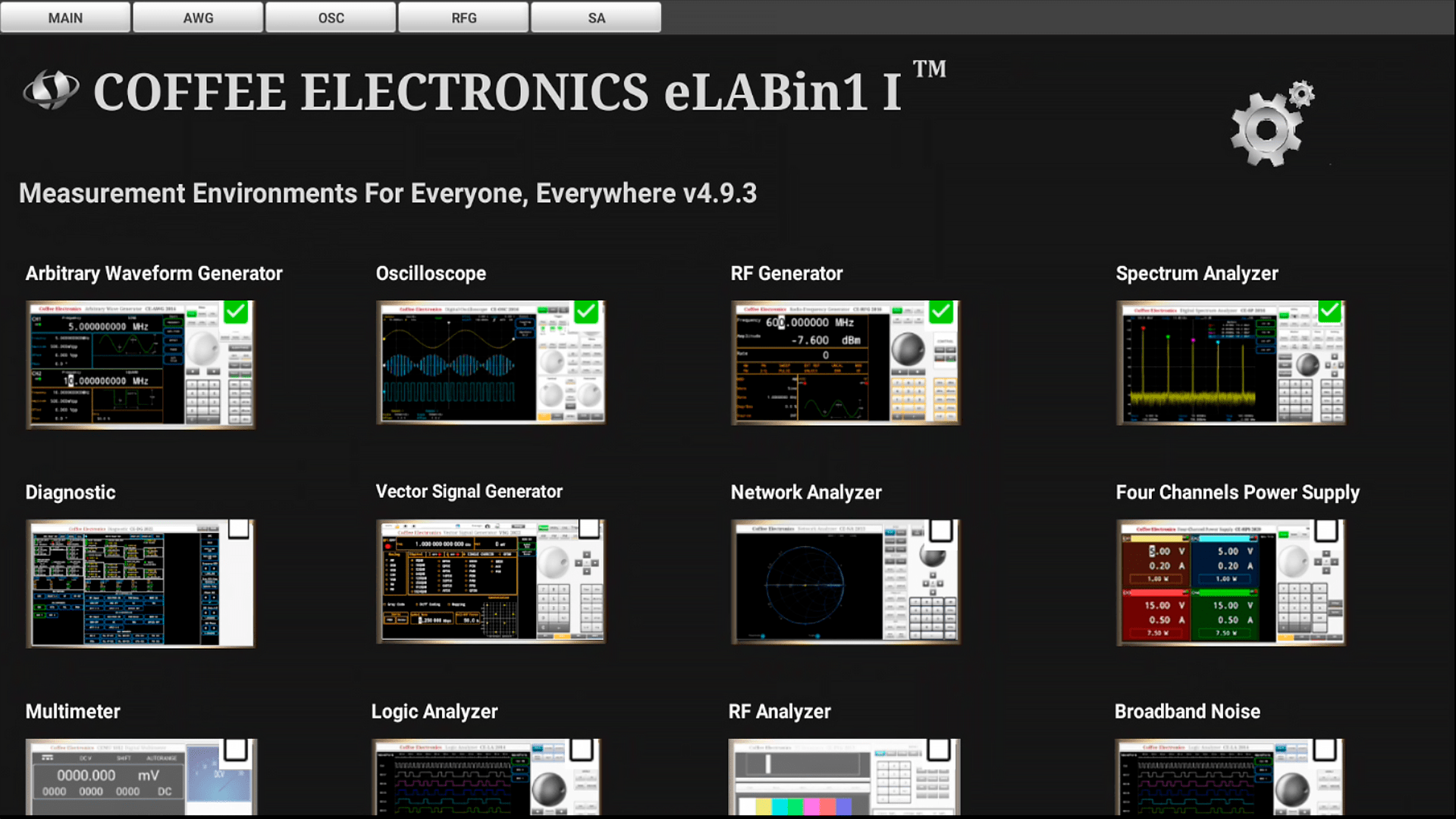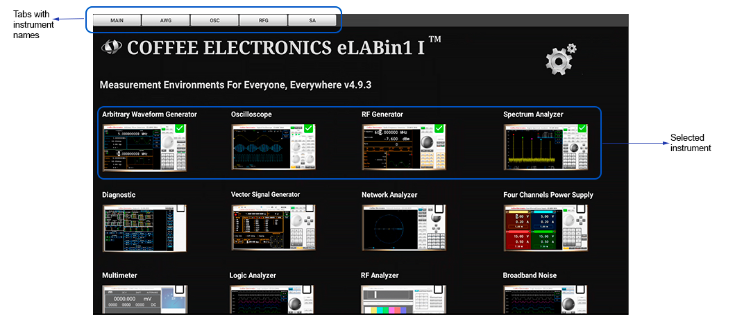 Wait for the eLABin1 to load the instruments on the screen as shown in Figure 1 .